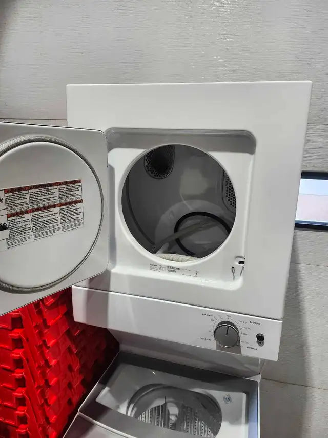 I'm selling a used Whirlpool stacked laundry unit, perfect for smaller spaces, combining both washer and dryer in one compact design. This unit is in good working condition and has been well-maintained. It features multiple wash and dry cycles to suit all your laundry needs. We are told it works perfectly with no issues.