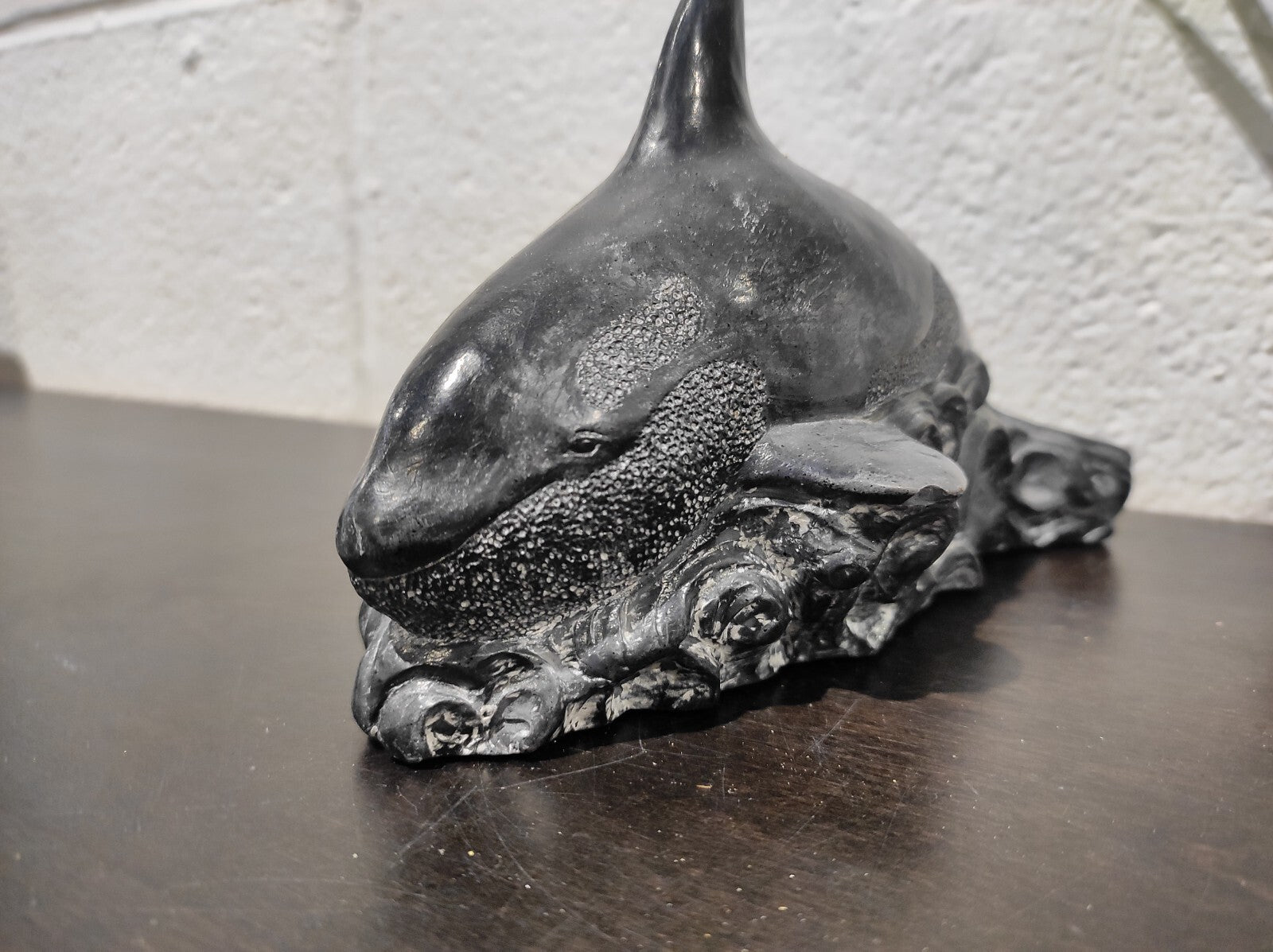 The Wolf Original Soapstone Dolphin Figurine is a hand-carved masterpiece that showcases the beauty of both nature and craftsmanship. Made from high-quality soapstone, this figurine captures the elegance and fluid motion of a dolphin, symbolizing freedom, intelligence, and grace. The smooth, polished surface and natural tones of the soapstone make each piece unique, making it a perfect decorative item for animal lovers or collectors.