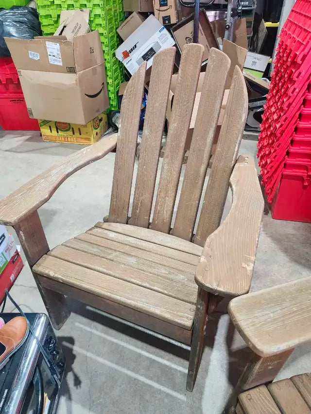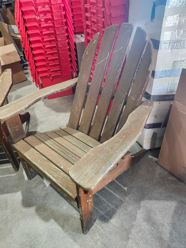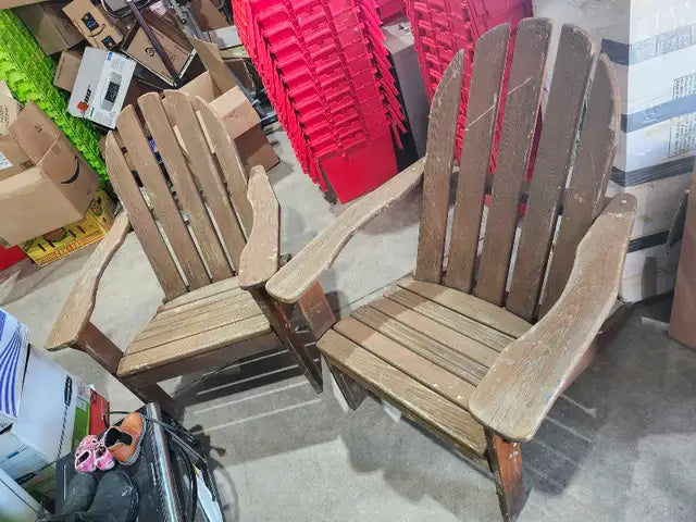 Get ready to kick back and relax with this pair of classic Adirondack chairs! These chairs are used, showing some signs of weathering, but with a lick of paint these could be brought back to their former glory. Perfect for a porch, garden, or backyard.