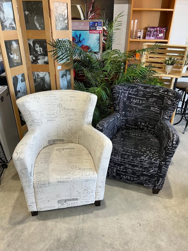 Accent chair - 2 Available, 1 black, 1 white. Both in pretty great condition and have been thoroughly cleaned. $100 each.