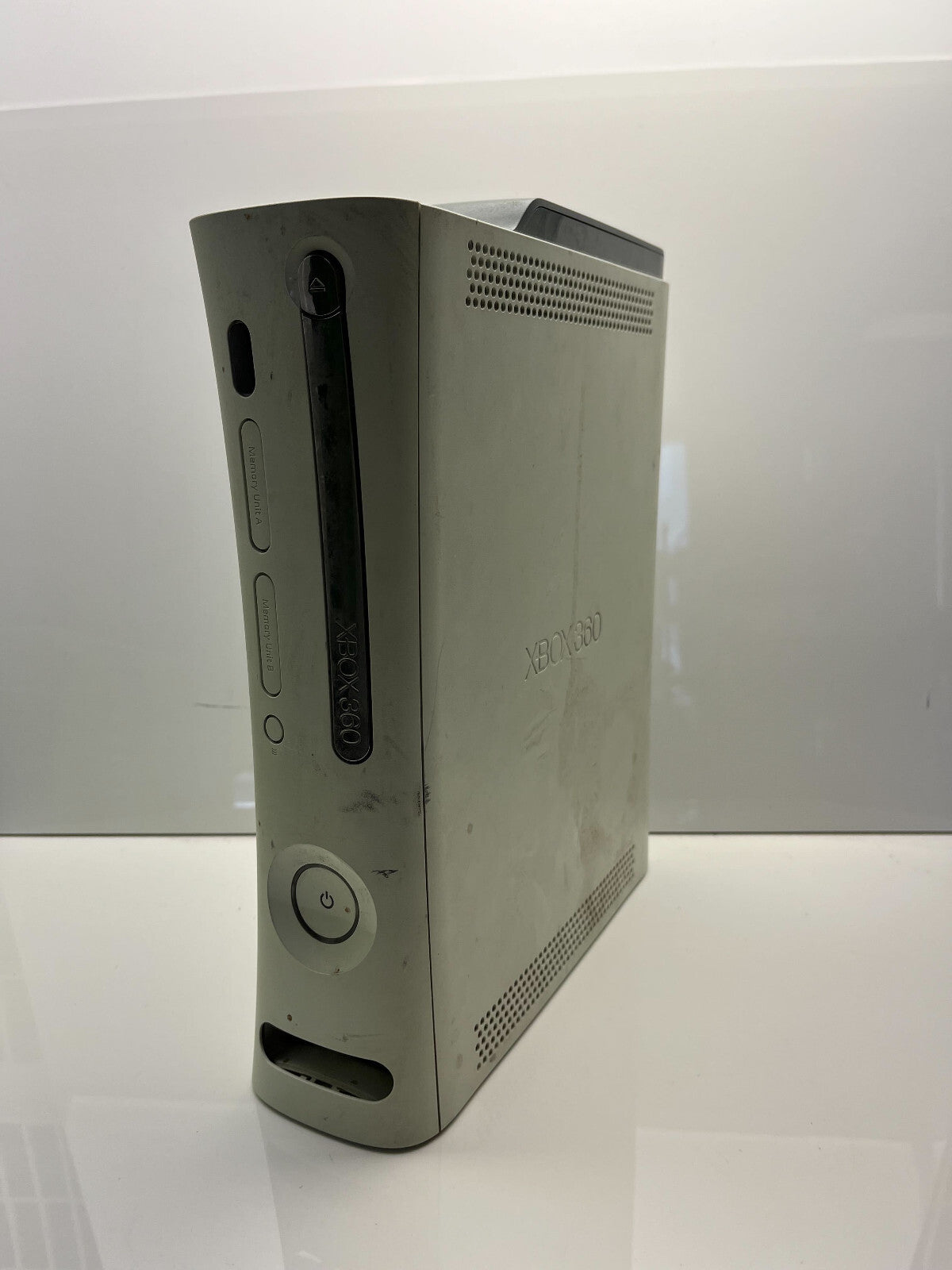 Description: Console is tested, working, and optical drive reads discs fine. Hinge door in front of USB ports stuck open. Some cosmetic defects (scratches, dirt, etc.) to exterior. Game discs are not tested.
