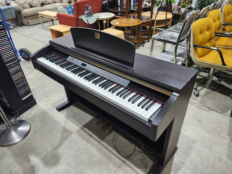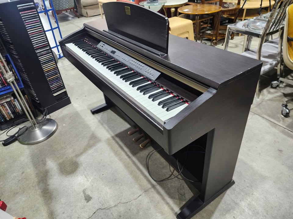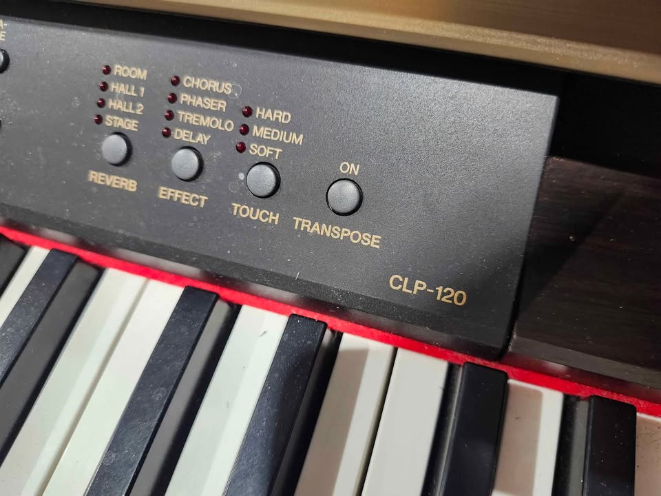 The CLP-120 is an 88-key Graded Hammer keyboard in a woodgrain cabinet with dark rosewood finish. Three separate foot pedals provide a realistic piano feel. Its Advanced Wave Memory (AWM) piano voice is made up of CD-quality stereo samples that dynamically adjust according to touch. 14 different voices provide a wide range of distinctive sounds for practice and performance. 50 built-in songs with sheet music will help hone piano skills. Recording capability makes it more fun to play and be creative. The CLP-120 is a great choice for the beginning students and hobbyists who are looking for a flexible yet solid set of features.
