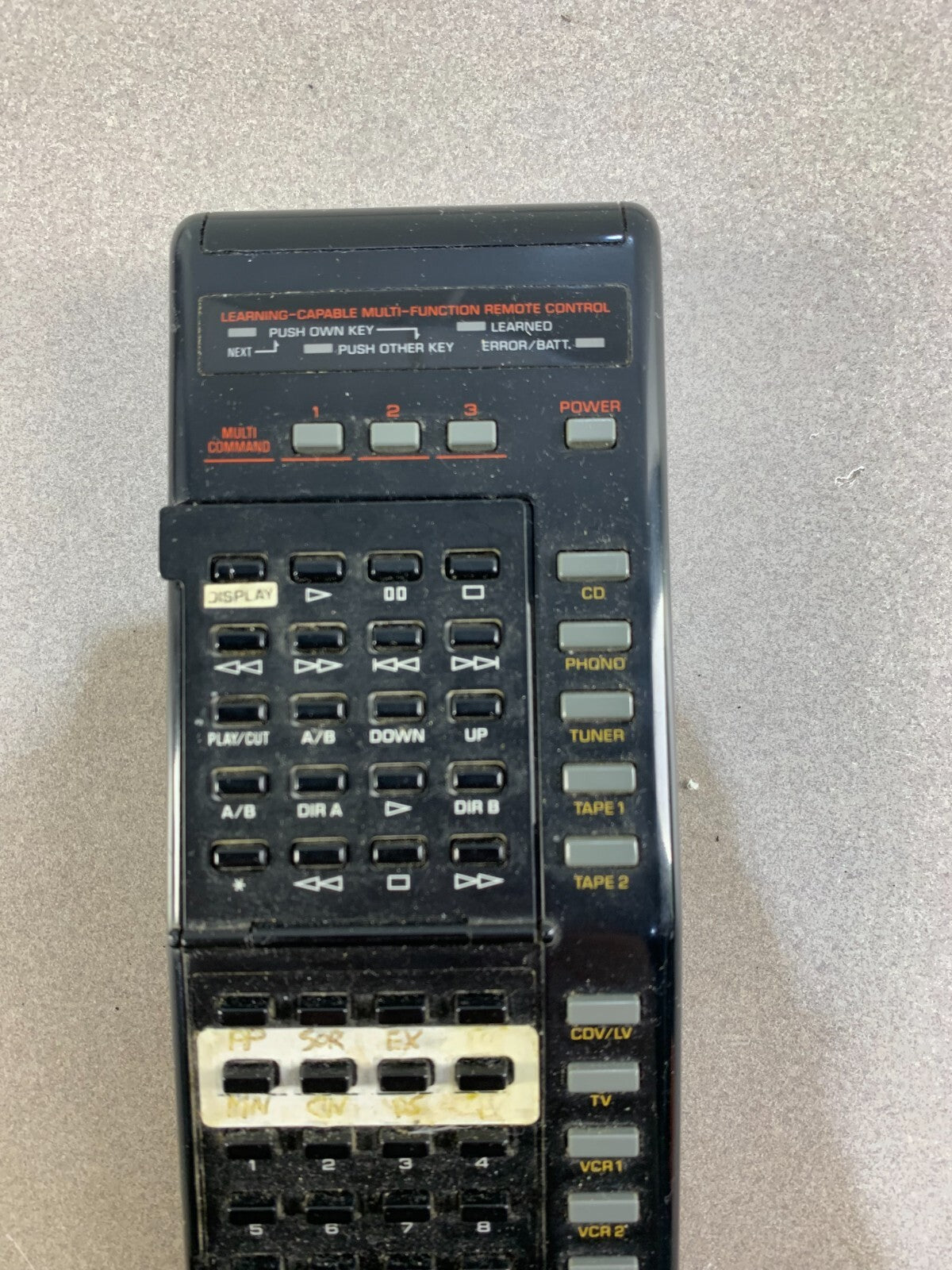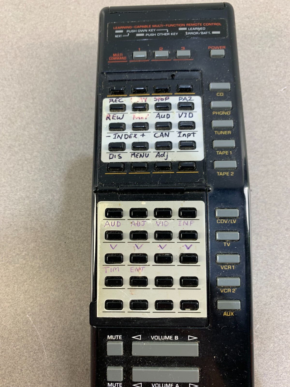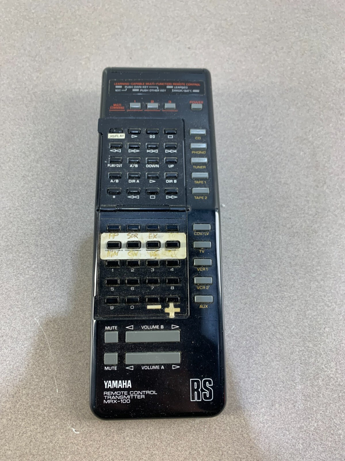 The Yamaha MRX-100 Remote Control Transmitter is a specific remote control designed for use with Yamaha audio equipment. It allows users to control various functions on their Yamaha devices from a distance. With its sleek design and user-friendly interface, the Yamaha MRX-100 provides convenience and ease of use for controlling audio settings and playback. Perfect for those looking to enhance their TV, video, or home audio experience with a reliable and high-quality remote control.