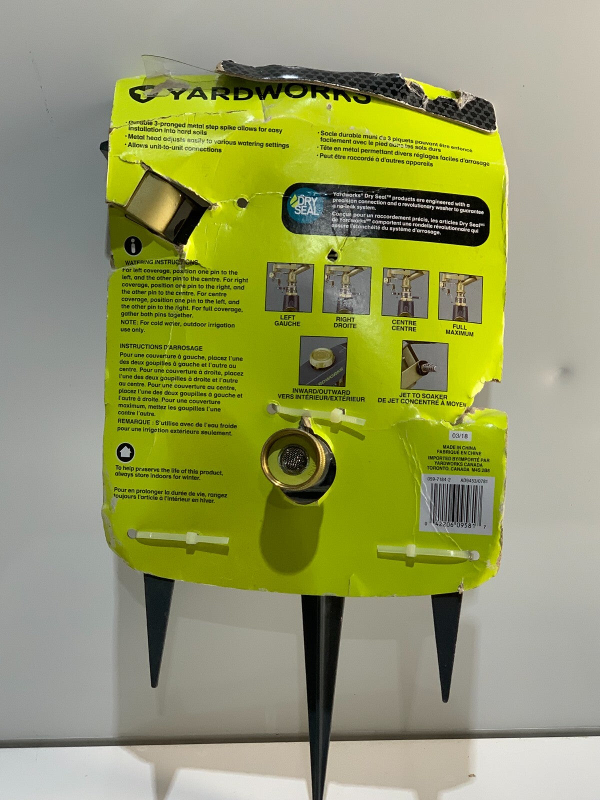 Effortlessly maintain a lush, green lawn with the Yardworks Dry Seal Impulse Sprinkler, the ideal solution for covering up to 3600 square feet. Engineered for durability, this robust metal spike ensures steady performance and resilience against the elements, providing a consistent watering solution for your garden or lawn. The design features a 3-prong metal spike for easy installation, offering a secure and stable base to withstand the rigors of daily use. With its efficient impulse sprinkler action, it delivers a reliable and water-saving irrigation system that's both environmentally friendly and beneficial to your outdoor spaces.