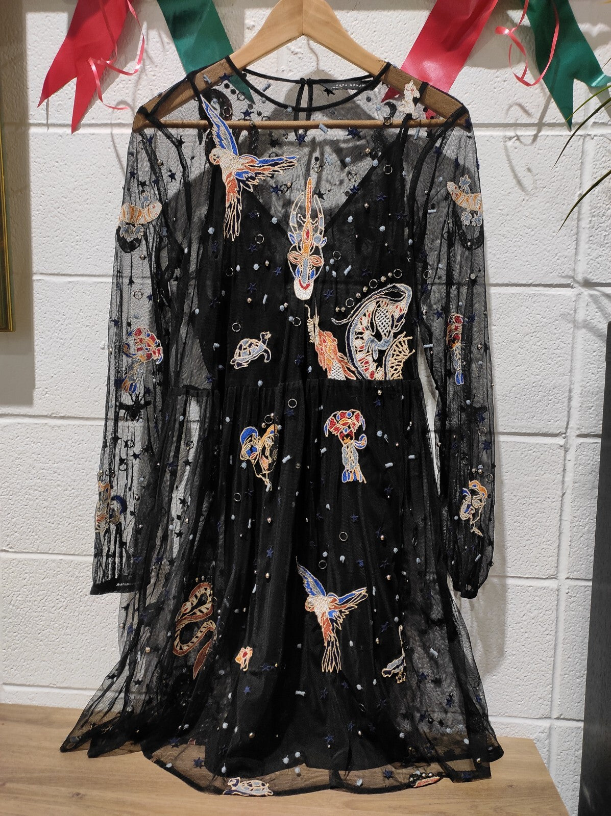 The ZARA Astrology Midi Dress is a rare and stunning piece from ZARA's limited collection, perfect for those who appreciate both fashion and celestial-inspired design. With its unique astrological motifs and flattering midi length, this dress is an eye-catching choice for special occasions or casual outings.