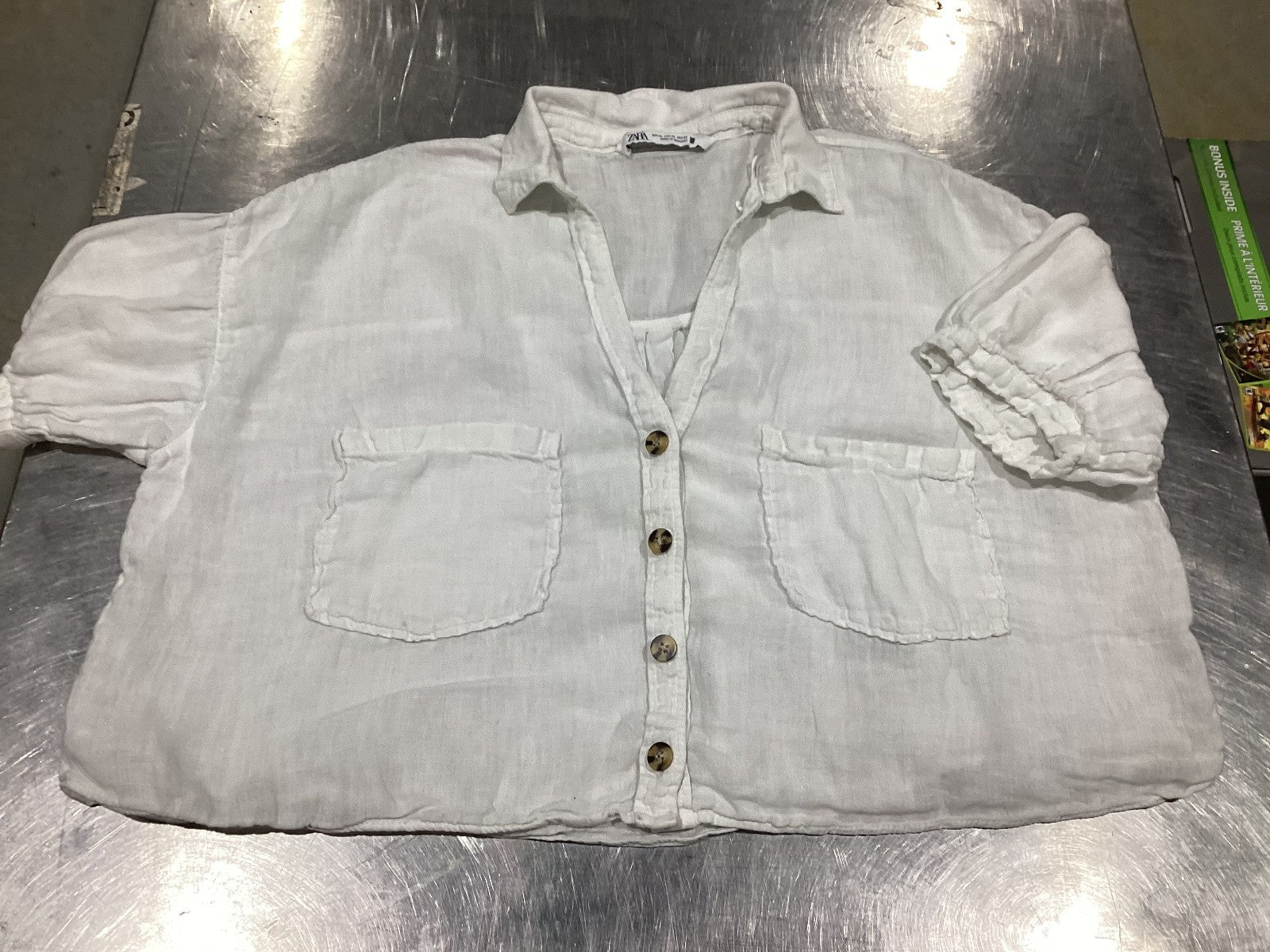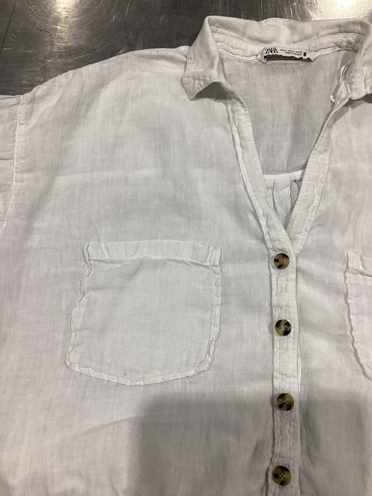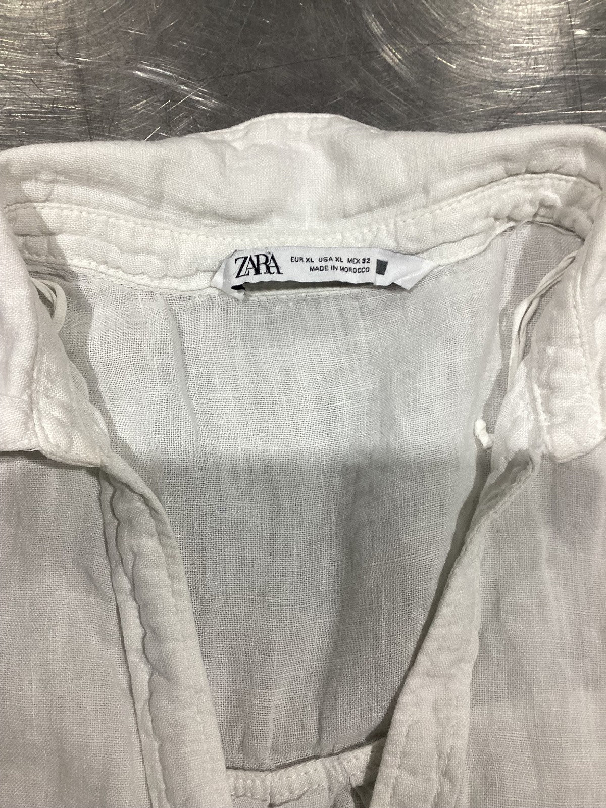 The Zara White Linen Blouse is a stylish and versatile option for women's casual wear. Made from high-quality linen fabric, this short sleeve blouse features a solid white color, button closure, and a regular fit. Ideal for the summer and spring seasons, this blouse from the popular brand Zara is a timeless basic that can be easily paired with jeans or trousers for a trendy look. Machine washable for easy care, this blouse offers both style and convenience for everyday wear.