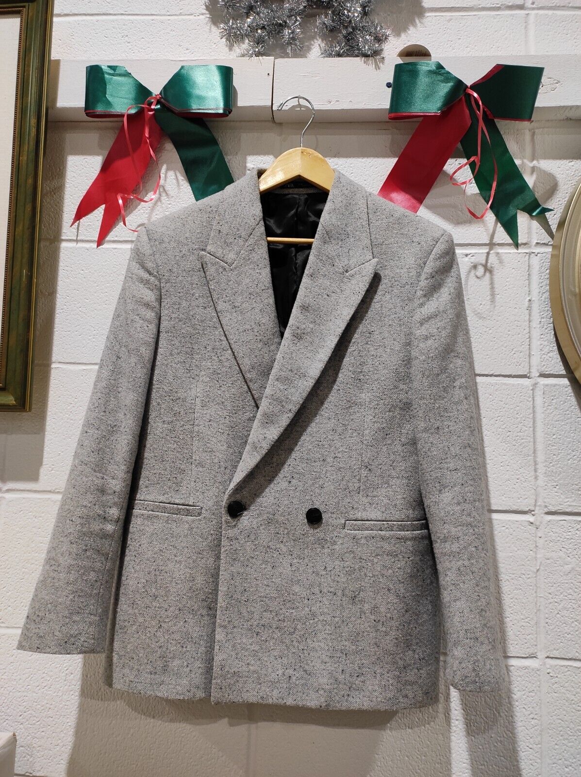 The Zara Women's Textured Gray Blazer in size 36 is a sophisticated and versatile wardrobe staple. Its tailored design and textured fabric make it perfect for both professional and chic casual ensembles.